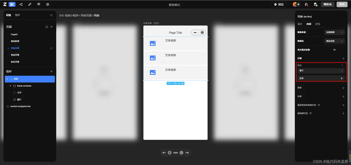 如果是假删除的话,我们的列表页还需要配置一下过滤条件,让我们的状态等于正常,如果状态被修改为已删除就不查询,就实现了删除的效果