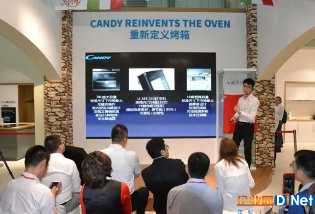 CANDY集团中国区及金羚电器有限公司厨电项目业务发展经理孔凡超主持了CANDY WATCH&TOUCH全屏触摸可视化烤箱新品的亚洲首发仪式,该产品系全球首款智能互联网烤箱,只有一个实体按钮的设计,让其看起来更像一个iPad,智能、全触控、创新设计等特性,完全可以用“重新定义烤箱”来形容,超越市面上所有同类产品。全视野显示屏门,内置高清摄像头,使内部空间更大,并能轻松看到烤箱内食物的状态,让热爱美食的人轻松智能地尽享美味。