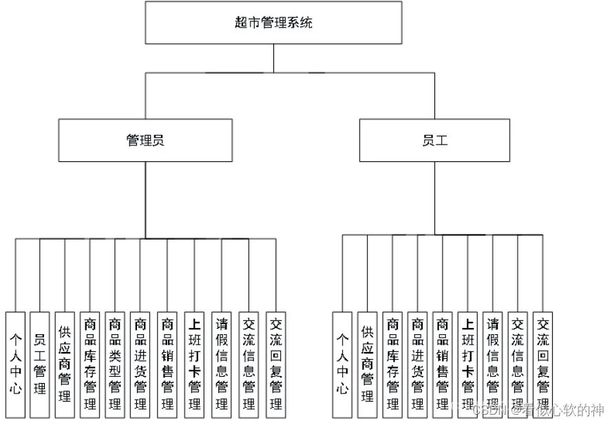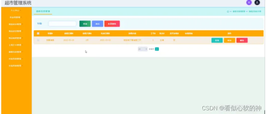 员工登录进入超市管理系统可以查看个人中心、供应商管理、商品库存管理、商品进货管理、商品销售管理、上班打卡管理、请假信息管理、交流信息管理、交流回复管理等内容。