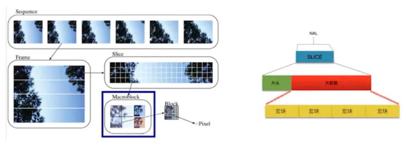 一帧图片经过 H.264 编码器之后,就被编码为一个或多个片 (slice),每片包含整数个宏块(至少一个宏块,最多包含整个图像宏块),NAL单元就是装载着这些片 (slice)的载体。