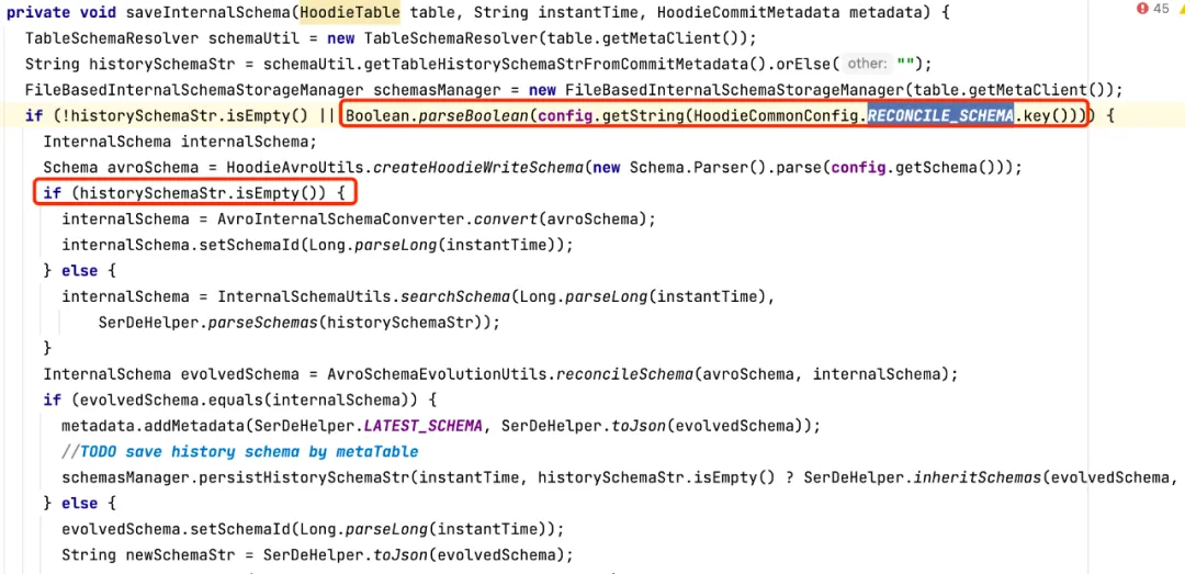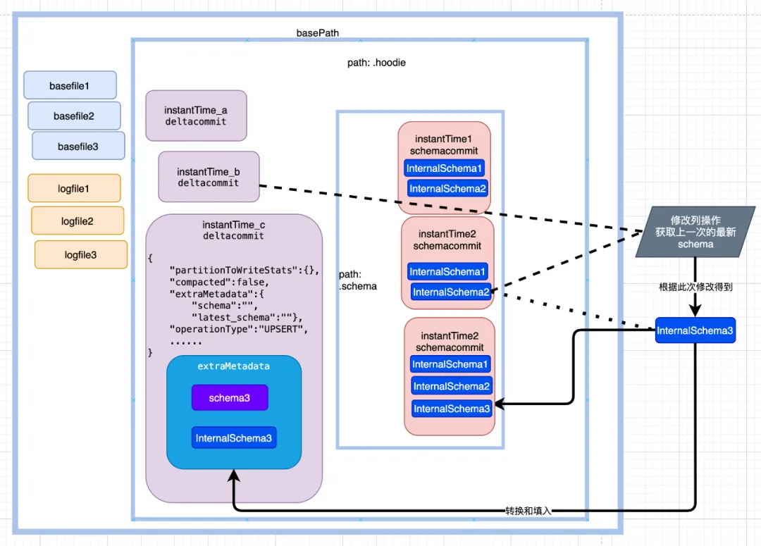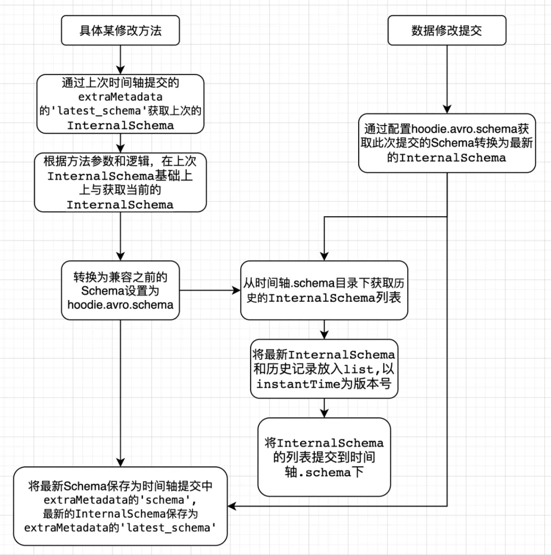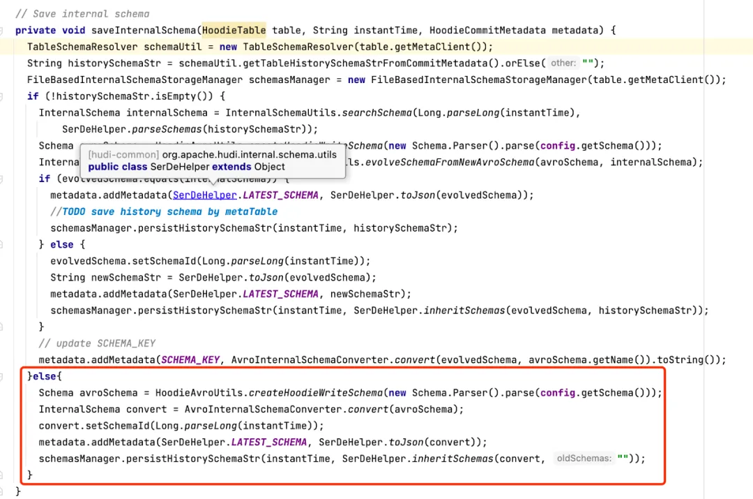 注意:在一次数据写入操作完成后的commit阶段,会根据条件判断,是否保存 InternalSchema,关键条件为参数 hoodie.schema.on.read.enable