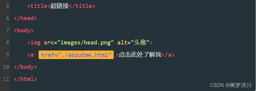 ...例如右边的代码,将href设置为“aboutme.html”的地址。