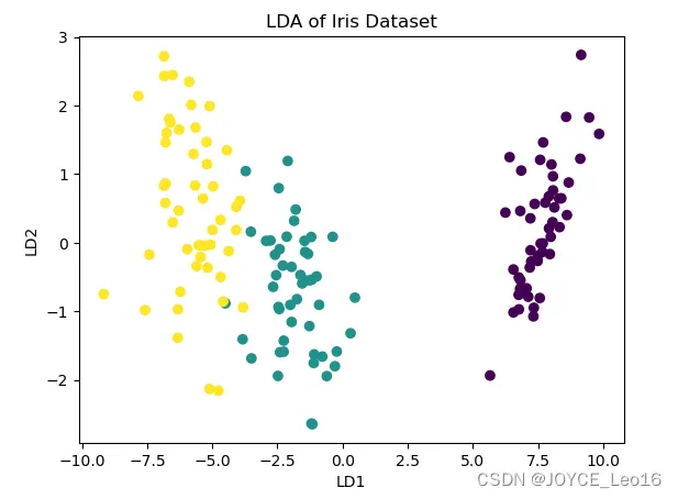 原理:LDA是一种监督学习算法,旨在找到能够最大化类间差异和最小化类内差异的特征子空间。LDA特别关注数据的类别标签,使得数据投影后,同类数据点尽可能接近,不同类数据点尽可能远离。