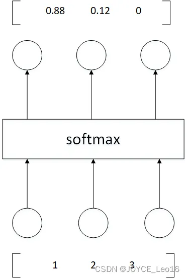 继续看下面的图,三个输入通过 softmax 后得到一个数组 ,这就是 soft 的功能。