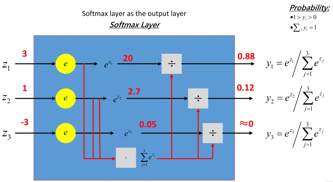softmax直白来说就是将原来输出是 通过 softmax函数一作用,就映射成为(0,1)的值,而这些值的累和为1(满足概率的性质),那么我们就可以将它理解成概率,在最后选取输出结点的时候,我们就可以选取概率最大(也就是值对应最大的)结点,作为我们的预测目标!