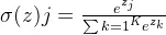 假设我们有一个数组, 表示 中的第 个元素,那么这个元素的 softmax 值就是:
