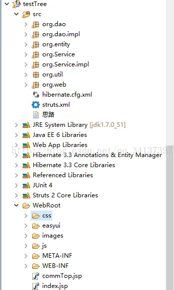 easyui的环境搭建大家自己实现以下吧,我这里就不细说了。那个也很简单!整体目录如下所示: