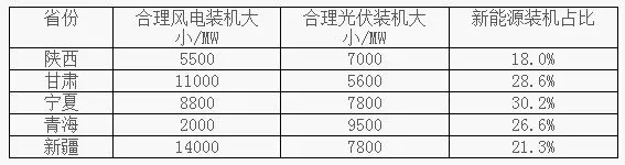 表2 2020年西北区域保证新能源正常消纳合理装机表