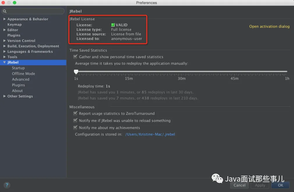 安装好后在设置里面会多出一项 JRebel 的配置