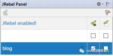 打开 JRebel Panel 窗口,然后勾选项目或模块即可,这时插件会在 src/main/resources 目录下生成 rebel.xml 文件,这里面指定了插件检测热部署文件夹的路径