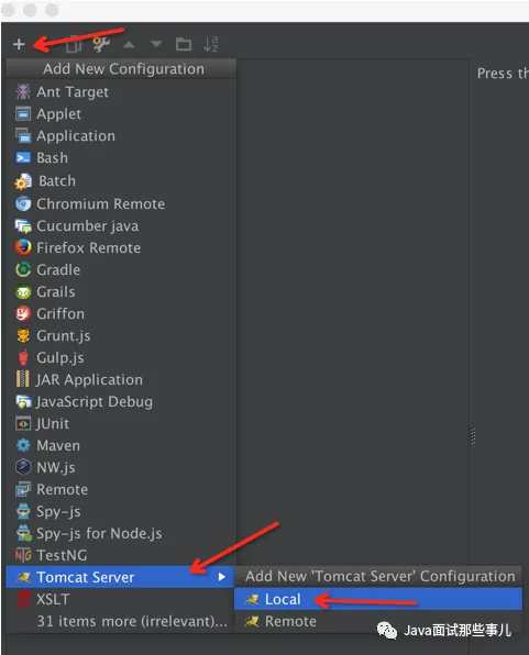 点 + 号选择 Tomcat Server -> Local