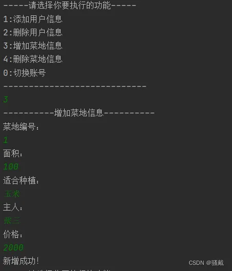 简介: 菜地管理系统【控制台+MySQL】(Java课设)