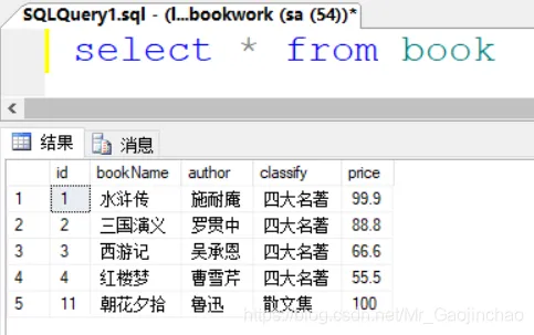 package top.gaojc.test; import java.sql.Connection; import java.sql.PreparedStatement; import java.sql.ResultSet; import top.gaojc.bean.Book; import top.gaojc.util.DBUtil; public class BookTest { public static Book getBookByName(String bookName) { // 连接数据库并且把数据查询出来 存储在book对象中,最后返回book对象即可 // 1 2 调用DBUtil方法添加驱动程序包、连接数据库 Connection conn = DBUtil.getConn(); // 3.添加sql语句 String sql = "select * from book where bookName = ?"; // 4.准备一个和数据库打交道的 PreparedStatement ps = null; ResultSet rs = null; Book book = null; try { ps = conn.prepareStatement(sql); ps.setString(1, bookName); // 5.查询结果 rs = ps.executeQuery(); if (rs.next()) { // 创建一个有属性值的对象 // 6.输出 book = new Book(rs.getInt(1), rs.getString(2), rs.getString(3),rs.getString(4), rs.getFloat(5)); } } catch (Exception e) { // TODO: handle exception } finally { // 7.调用DBUtil关闭资源 DBUtil.close(conn, ps, rs); } // 返回值 return book; } }
