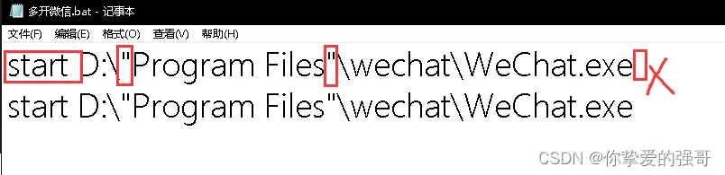 将刚才复制的目标地址路径粘贴到多开微信.bat