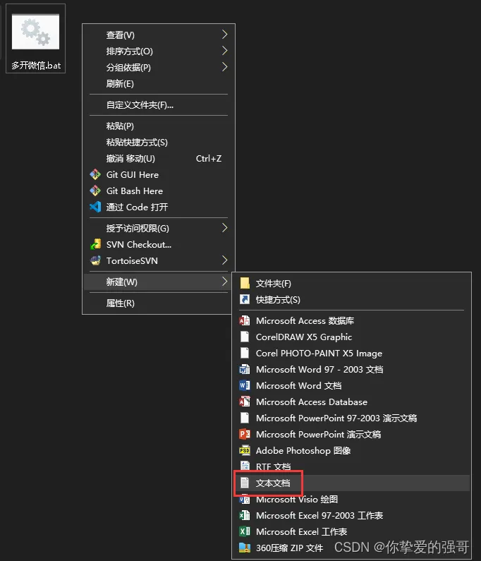 在桌面右击新建一个文本文档,重命名“多开微信.bat” ,并编辑内容