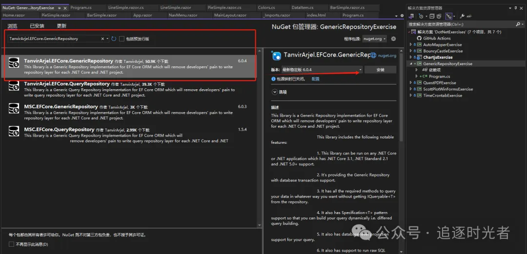 搜索名为:TanvirArjel.EFCore.GenericRepository的NuGet安装。
