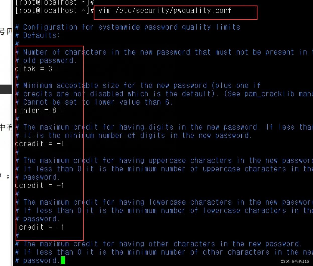 1.密码长度不小于8位,至少包括数字、大写字母、小写字母、特殊字符中的三种字符,非常见弱密码,如Admin@123、1qaz@WSX等,非逻辑弱密码,如sdyc@123等; 2.如“difok=3 minlen=8 ucredit=-1 lcredit=-1 dcredit=-1 remember=5”符合要求。 |