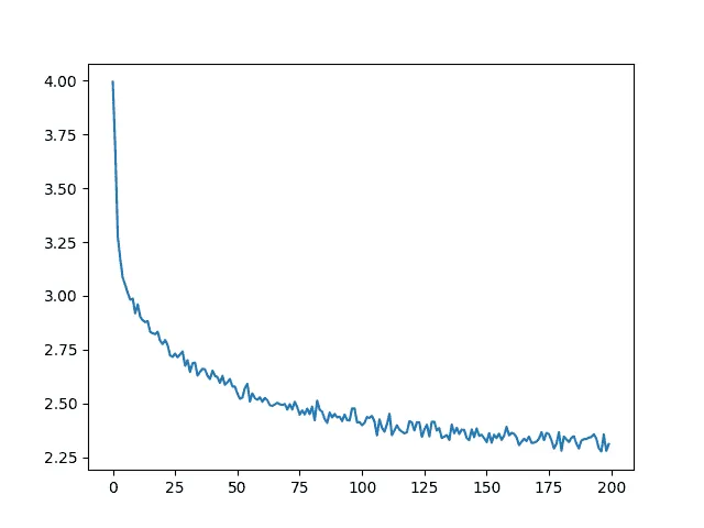 import matplotlib.pyplot as plt import matplotlib.ticker as ticker plt.figure() plt.plot(all_losses)