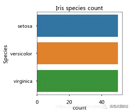 Countplot如果想知道在每个类别下面有多少个观察值,用countplot就可以,相当于是做一个observation counts,用鸢尾花数据集展示如下: