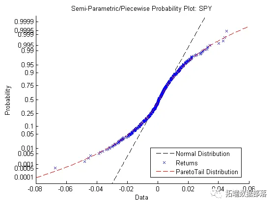 -Inf <x <-0.0125822(0 <p <0.1):下尾,GPD(0.0380262,0.0084794) -0.0125822 <x <0.01286(0.1 <p <0.9):内插内核平滑cdf 0.01286 <x <Inf(0.9 <p <1):上尾,GPD(0.0511828,0.00671413)