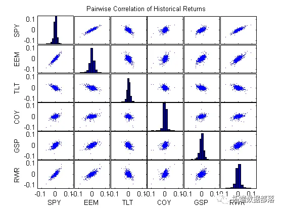 corrcoef(return) 每日收益的%线性相关矩阵 ans = 1 0.89745 -0.61065 0.4677 0.59174 0.83717 0.89745 1 -0.54167 0.45612 0.63322 0.76712 -0.61065 -0.54167 1 -0.30377 -0.3918 -0.44429 0.4677 0.45612 -0.30377 1 0.33312 0.43525 0.59174 0.63322 -0.3918 0.33312 1 0.49161 0.83717 0.76712 -0.44429 0.43525 0.49161 1