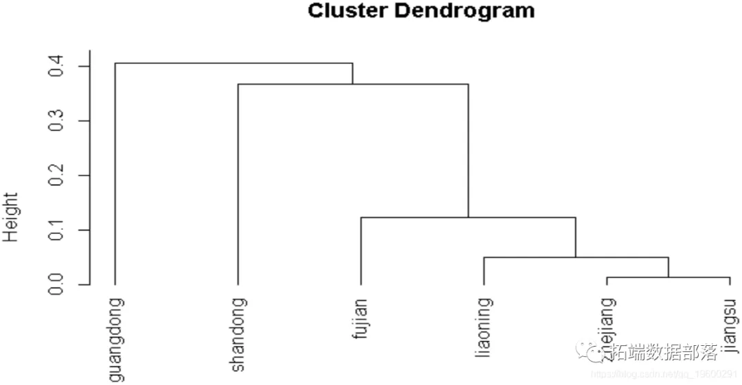 ##生成数据 #' economyCompare = data.frame(refer, liaoning, shandong, jiangsu, zhejiang, fujian, guangdong) # # 异常控制 # if (any(is.na(df))) stop("'df' have NA" ) if (distingCoeff<0 | distingCoeff>1) stop("'distingCoeff' must be in range of [0,1]" ) diff = X #设置差学列矩阵空间 for (i in mx = max(diff) #计算关联系数# relations = (mi+distingCoeff*mx) / (diff + distingCoeff*mx) #计算关联度# # 暂时简单处理, 等权 relDegree = rep(NA, nc) for (i in 1:nc) { relDegree[i] = mean(relations[,i]) # 等权 } #排序: 按关联度大到小# X_order = X[order(relDegree, relDes = rep(NA, nc) #分配空间 关联关系描述(说明谁和谁的关联度) X_names = names(X_o names(relationalDegree) = relDes if (cluster) { greyRelDegree = GRA(economyC # 得到差异率矩阵 # grey_diff = matrix(0 grey_diff[i,j] = abs(rel #得到距离矩阵# grey_dist = matrix(0, nrow iff[i,j]+grey_diff[j,i] } } # 得到灰色相关系数矩阵 # grey_dist_max = max(grey_dist) grey_correl = matrix(0, nrow = nc, ncol = nc) for (i in 1:nc) { for (j in 1:nc) { grey_correl[i,j] = 1 - grey_dist[i,j] / grey_dist_max } } d = as.dist(1-grey_correl) # 得到无对角线的下三角矩阵(数值意义反向了, 值越小表示越相关 ) # 主对角线其实表示了各个对象的相近程度, 画图的时候, 相近的对象放在一起 hc = hclust(d, method = clusterMethod) # 系统聚类(分层聚类)函数, single: 单一连接(最短距离法/最近邻) # hc$height, 是上面矩阵的对角元素升序 # hc$order, 层次树图上横轴个体序号 plot(hc,hang=-1) #hang: 设置标签悬挂位置 } #输出# if (cluster) { lst = list(relationalDegree=relationalDegree, return(lst) } ``` ```{r} ## 生成数据 rownames(economyCompare) = c("indGV", "indVA", "profit", "incomeTax") ## 灰色关联度 greyRelDegree = greya(economyCompare) greyRelDegree ```