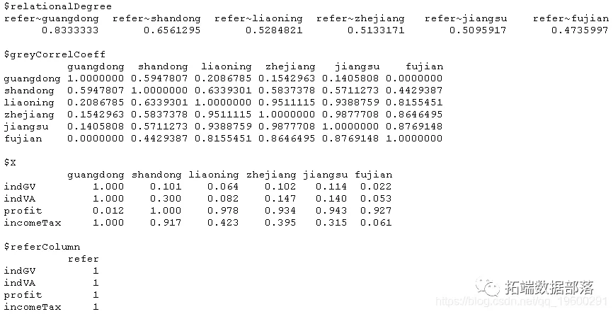 灰色关联度有两种用法。该算法用于测量两个变量的相似性,就像`cor`一样。如果要评估某些单位,可以转置数据集。