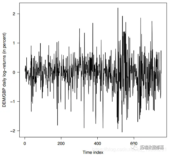 我们将贝叶斯估计方法应用于(DEM / GBP)外汇对数收益率的每日观察值。样本时间为1985年1月3日至1991年12月31日,共1974个观测值。此数据集已被推广为GARCH时间序列软件验证的非正式基准。从这个时间序列中,前750个观测值用于说明贝叶斯方法。我们的数据集中的观察窗口摘录绘制在图1中。
