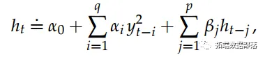 自Engle(1982)的开创性论文以来,使用时间序列模型改变波动率的研究一直很活跃。ARCH(自回归条件异方差)和GARCH(广义ARCH)类型模型迅速发展成为80年代预测波动率的经验模型的丰富家族。这些模型是金融计量经济学的广泛传播和必不可少的工具。在Bollerslev(1986)引入的GARCH(p,q)模型中,(金融资产或金融指数)对数收益yt在时间t的条件方差假设用ht表示,它是过去q个对数返回和过去p个条件方差的平方的线性函数。更确切地说: