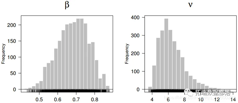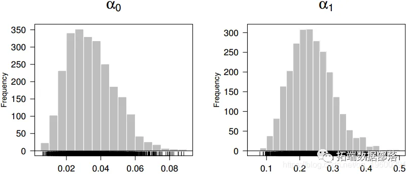 通过首先将输出转换为矩阵,然后使用函数hist,可以获取模型参数的边际分布。