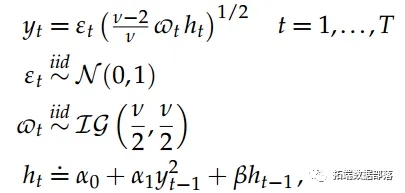 可以通过数据扩充编写具有Student-t改进的GARCH(1,1)模型,用于对数收益率fytg。