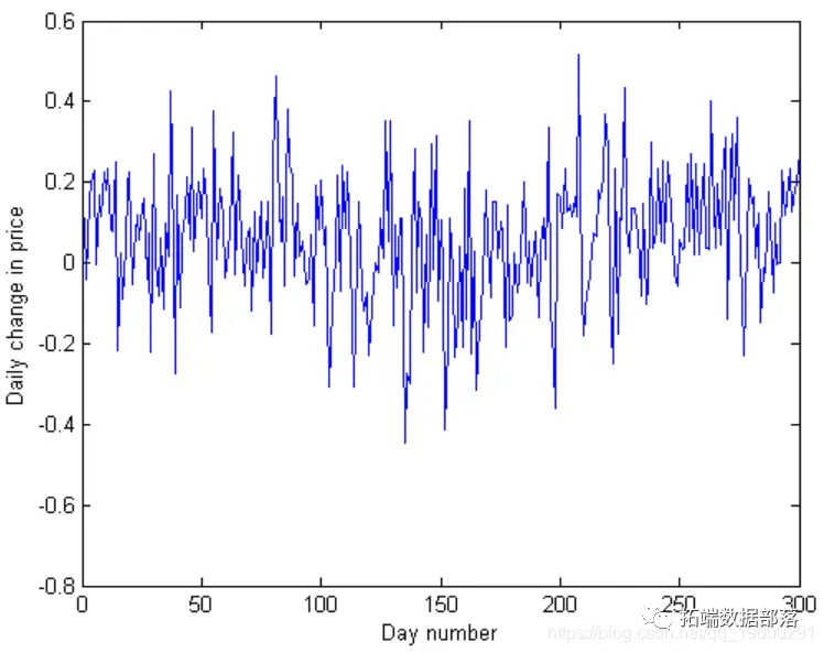 plot(returns) xlabel('Day number') ylabel('Daily change in price')