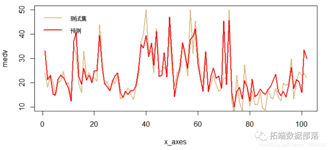 x_axes = seq(1:length(ypred)) lines(x_axes, ypred, col = "red", type = "l", lwd = 2) legend("topl