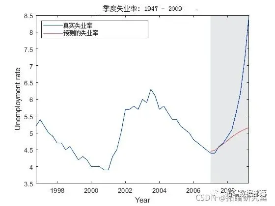 使用估计模型和样本内数据作为样本前观察预测 10 个数据。