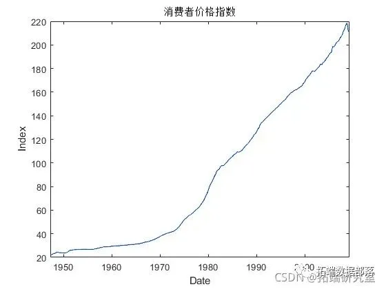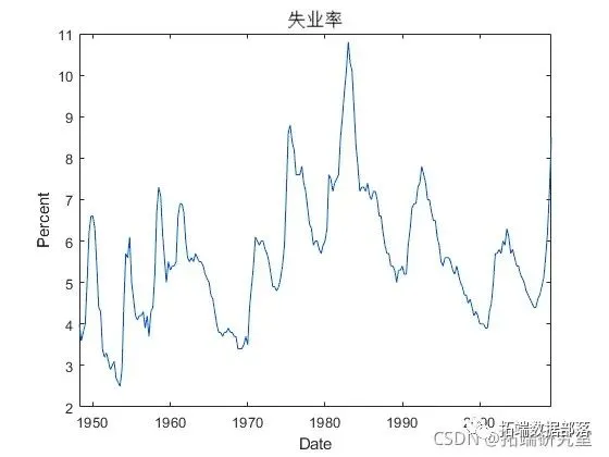 通过将 CPI 转换为一系列增长率来稳定 CPI。通过从失业率序列中删除第一个观测值来同步这两个序列。