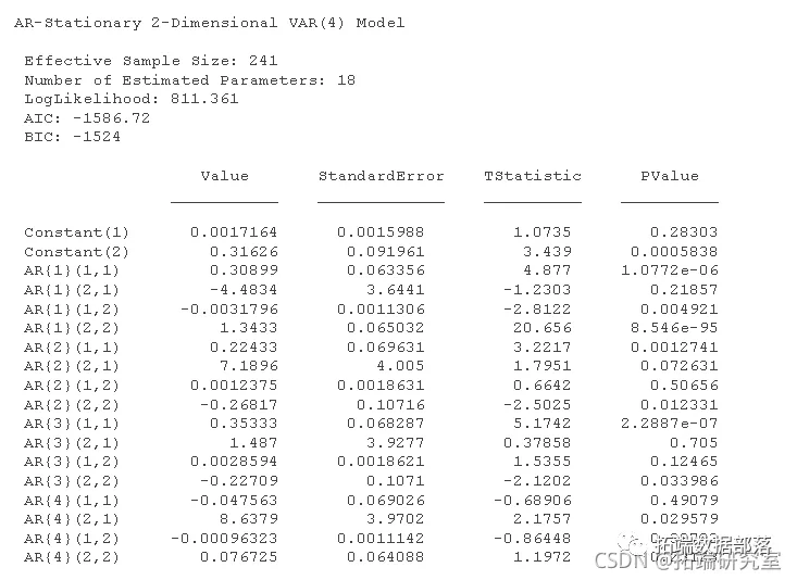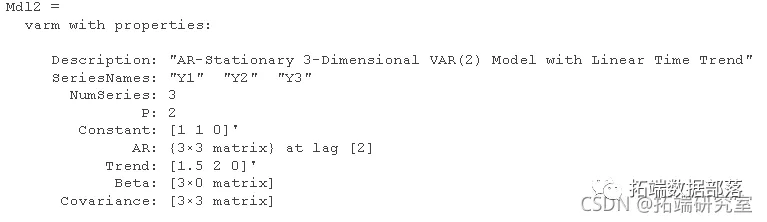 或者,您可以使用varm 与 for 相同的语法 创建另一个模型对象 Mdl,但另外指定 'Lags',2.