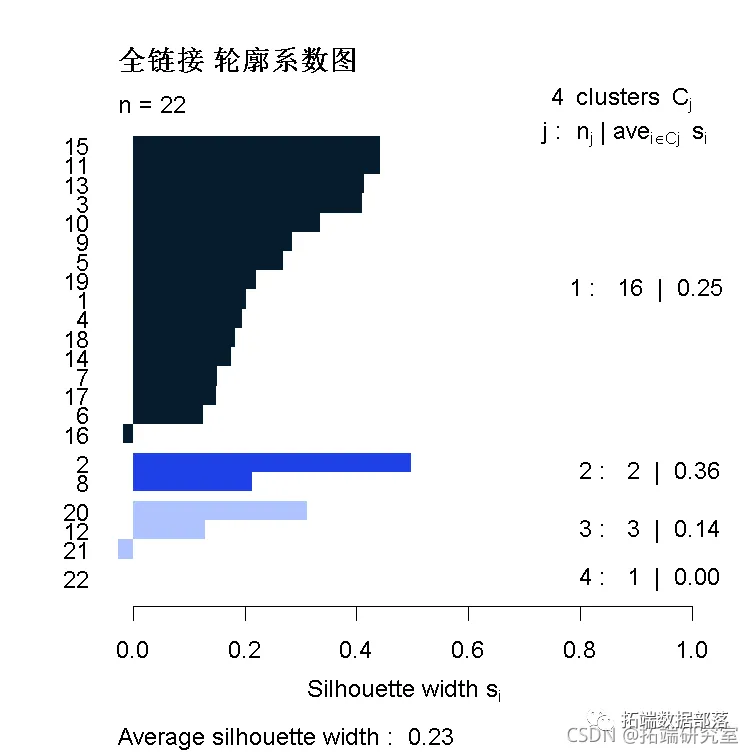plot(sloett(curee(asiahluc, 4), di), col min = "全链接 轮廓系数图")