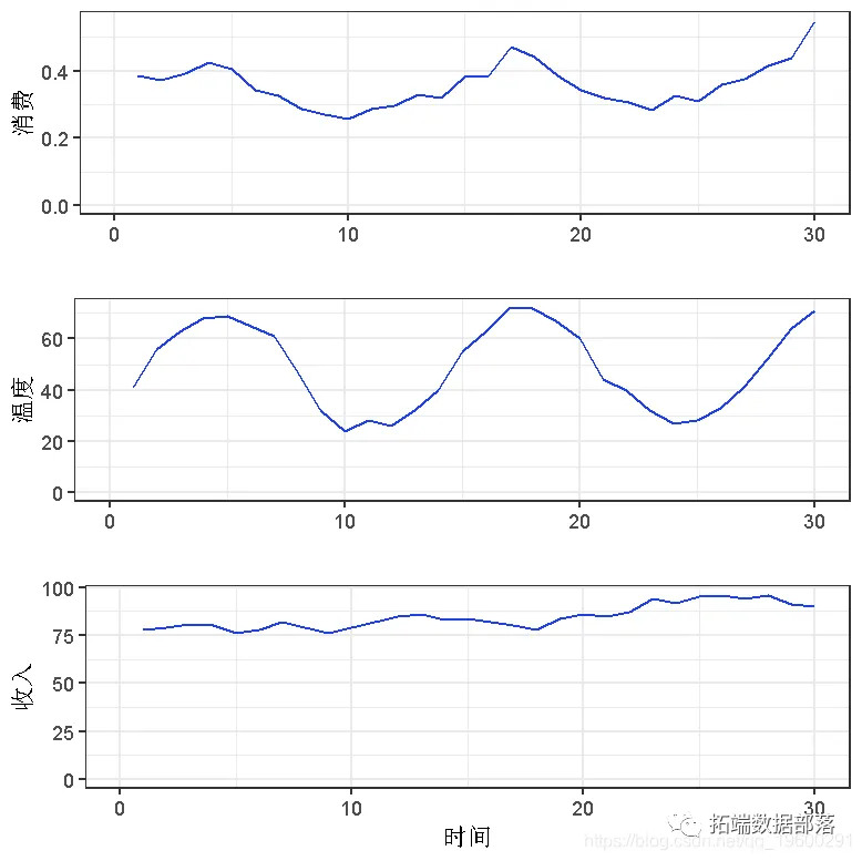 作为最后一个例子,我们考虑以下数据的ARIMAX模型。