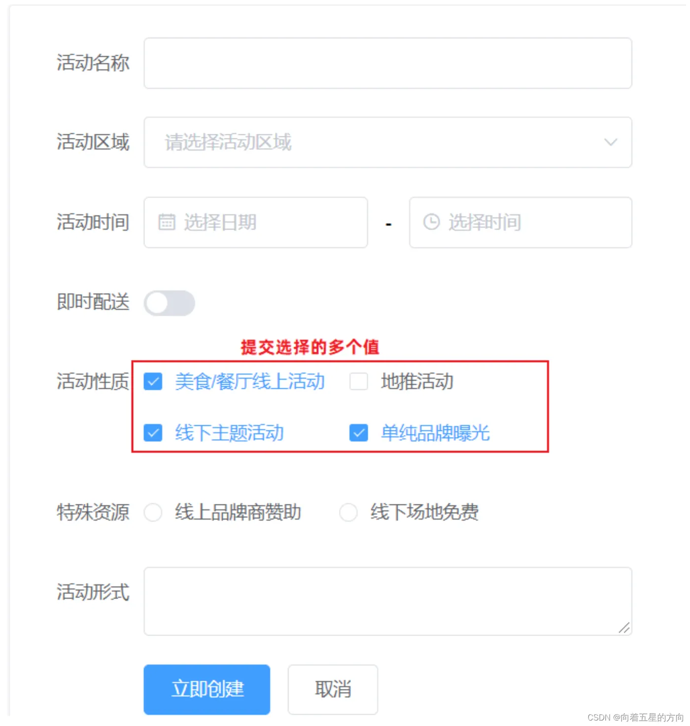 数组集合参数的使用场景:在HTML的表单中,有一个表单项是支持多选的(复选框),可以提交选择的多个值。