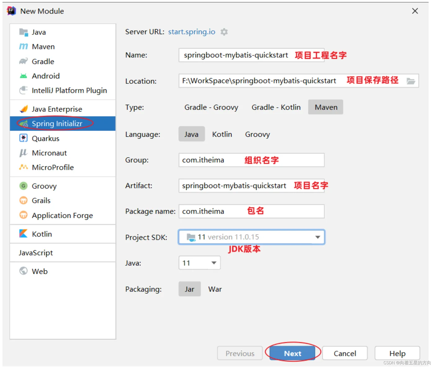 创建springboot工程,并导入 mybatis的起步依赖、mysql的驱动包。
