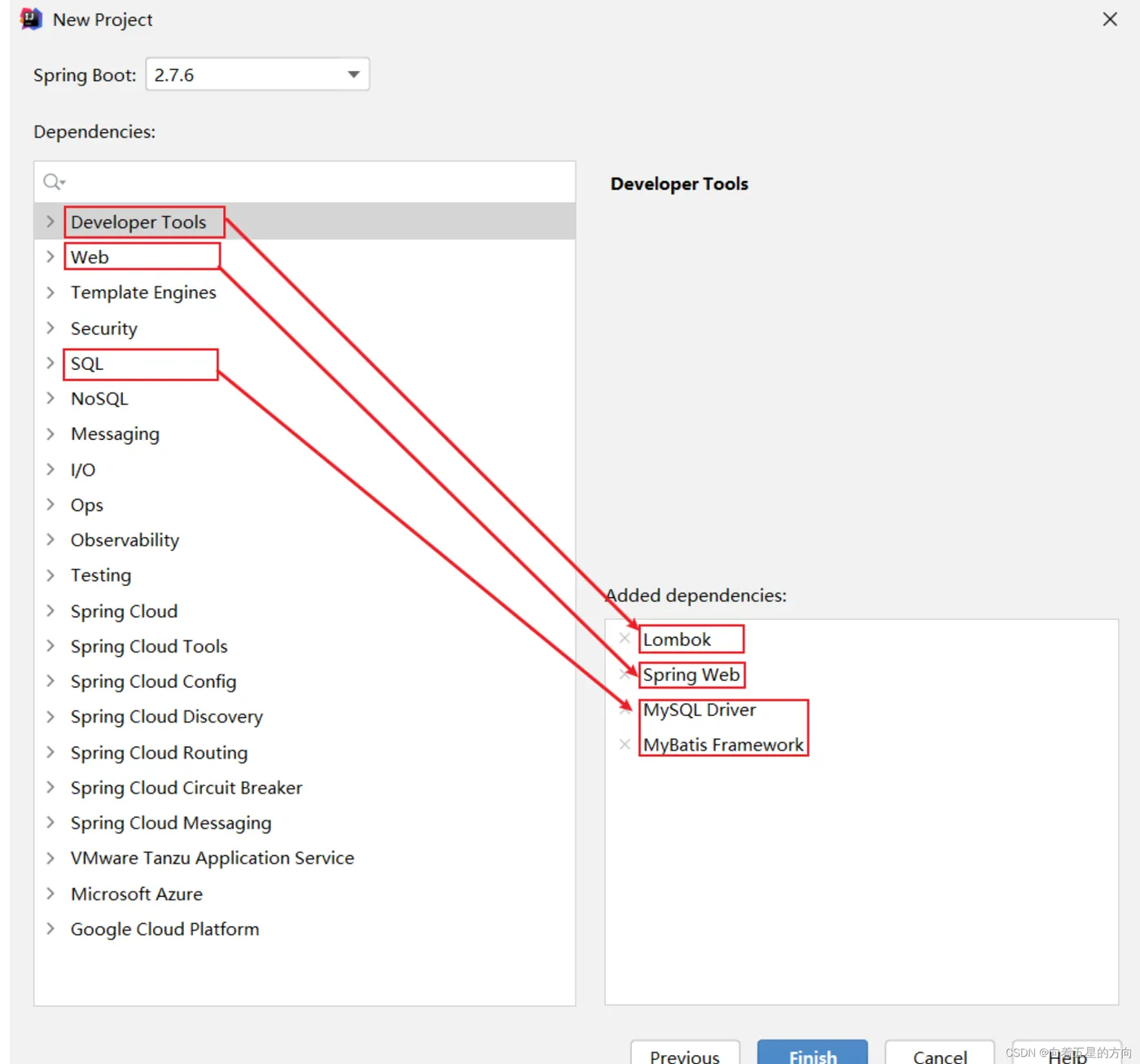 第2步:创建一个SpringBoot工程,选择引入对应的起步依赖(web、mybatis、mysql驱动、lombok) (版本选择2.7.5版本,可以创建完毕之后,在pom.xml文件中更改版本号)