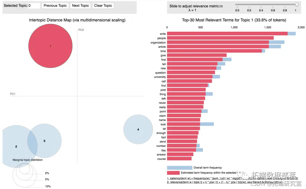 - 演示如何使用LDA从一组未知主题中找到主题结构