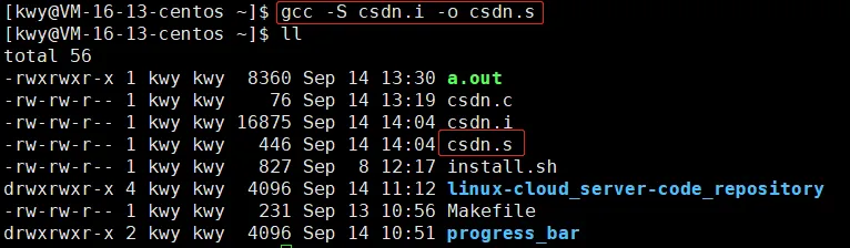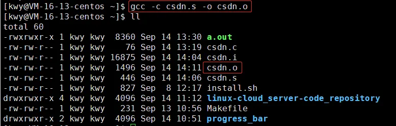指令解释: 将程序停留在汇编过程后,形成.o文件