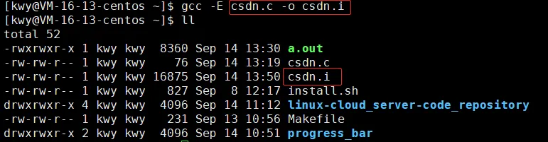 指令解释:将程序停留在预处理过程后,生成.i文件