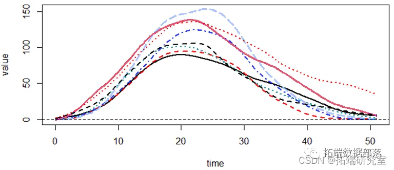 统计学中传统的数据类型有截面数据和时间序列数据。这两者都只能在某一纵向或横向上探究数据,且部分前提条件又很难满足。而函数型数据连续型函数与离散型函数长期以来的分离状态,实现了离散和连续的过度。它很少依赖于模型构建及假设条件。通过使用函数型数据,我们可以发掘新冠疫情数据中更多的信息。
