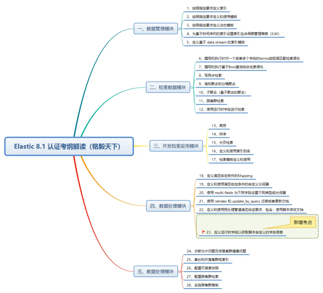 - 视频内容完全覆盖 8.1 考纲,包含新增考点:runtime_field。