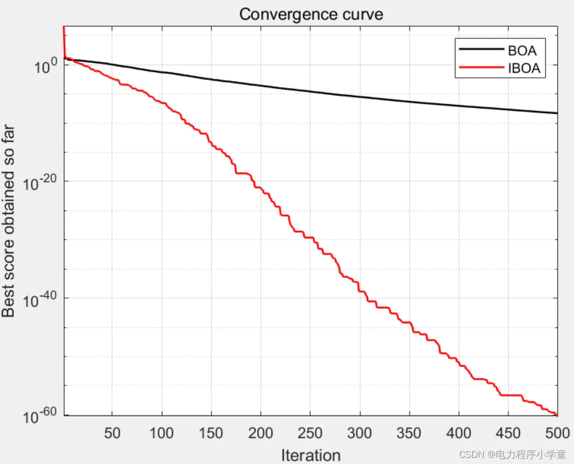 混合策略改进蝴蝶算法提供了23种测试函数,可以通过main程序修改测试函数,程序Get_Functions_detailsPRO有具体每个测试函数的公式,下面得到F2和F5两种测试函数下的原始算法和改进算法收敛性对比。