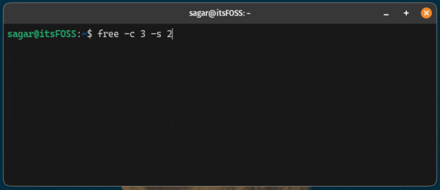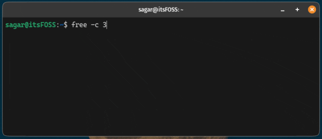 例如,在这里,如果我想以 2 秒的间隔显示统计信息 3 次,那么我将使用以下命令: