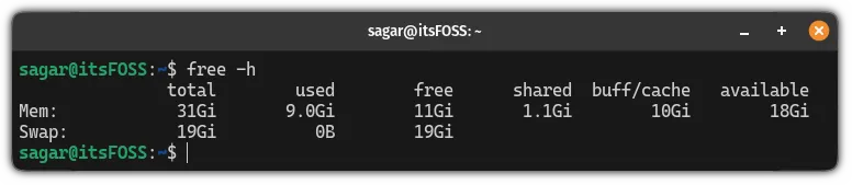 命令是了解系统内存(RAM)消耗情况,以及是否启用了交换的最简单方法之一。