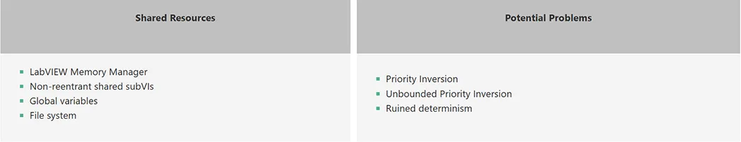 由不同优先级的多个线程使用共享资源可能会导致应用程序出现意外行为。表1显示了一些共享资源以及应用程序中可能出现的潜在问题。